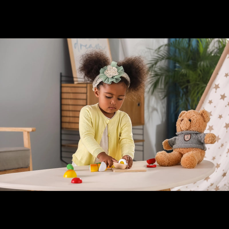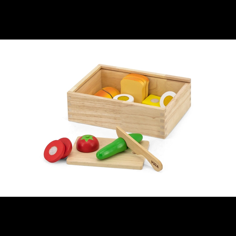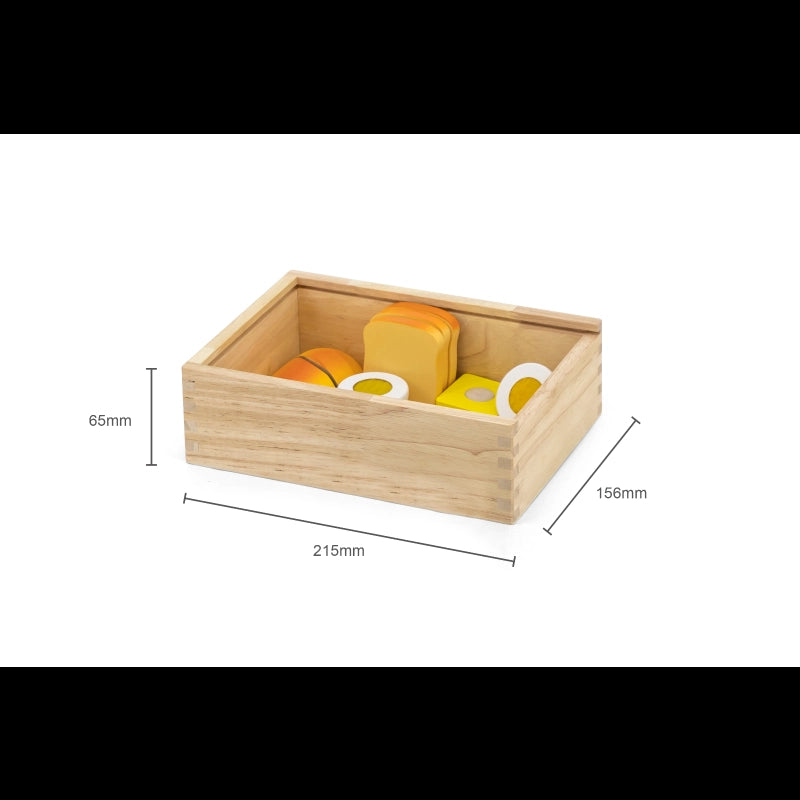 This well-finished wooden food playing set bring timeless fun! The cut surface of food has corresponding patterns, which are very real. Smooth surfaces and non-toxic materials ensure safe to play even while the smallmouth touches the toy.Cut food in half or several pieces and serve them to your customers, it is a great role-playing toy for kids and improves their imagination ability.After tasting the food, kids can fit them back together again with Velcro.While cutting and fitting, kids' hand-eye coordination and motor skill can be perfectly explored.Comes in a wooden box with acrylic sliding lid for cleaning up and storage.-Includes: Various food, wooden cutting board, safe knife, and wooden box with an acrylic sliding lid.