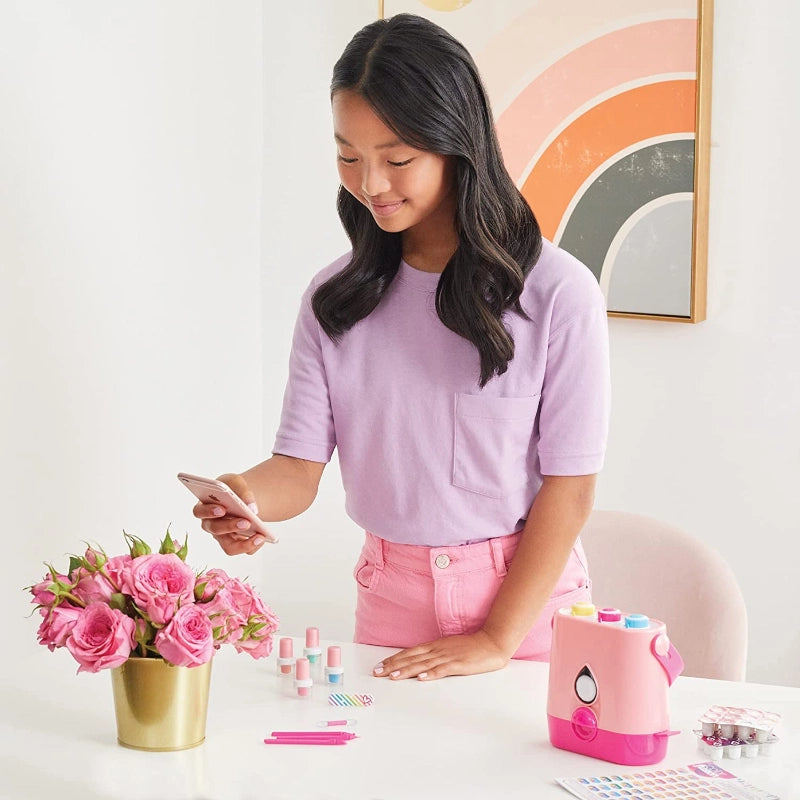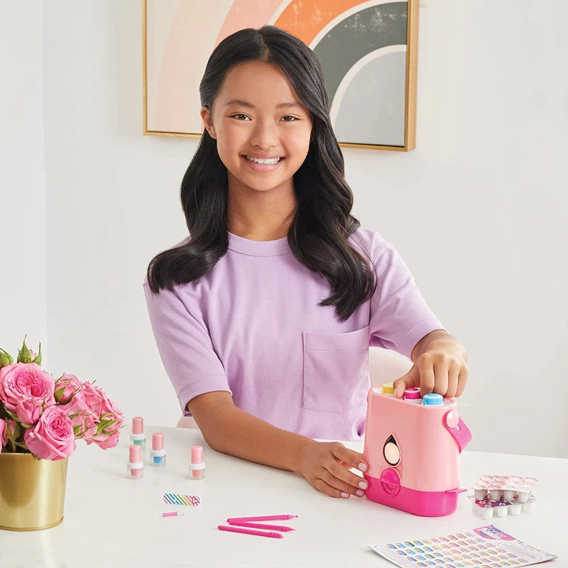 Get ready to shine yourself up with this awesome beauty kit from Make It Real!This kit has it all! Kids can make 200-plus custom colors for up to 120 manicures or pedicures. It comes complete with styling tools and nail art inspiration. The large light-up gem on this deluxe nail polish maker changes color based on the formula chosen so girls can see what color their polish will be before infusing. Paint your own nails or use it with a group of friends.-Includes: Color fusion nail polish maker unit, 3 color tubes: cyan, magenta, yellow (3.5ml each), 12 white glossy water-based capsules (1.0 ml each), nail file, small tip tool, large tip tool, blending tool, cuticle pusher, black cup, 4 capsule holders with brush, and instructions with 60 color recipes.