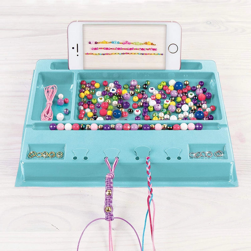 Design your own jewelry and glam yourself with Make It Real!This DIY jewelry-making kit teaches young creators how to make 50 unique jewelry pieces that reflect their personal style with vibrant beads, gems and more.-Includes: 790 various beads, 5 plastic gems, 7 colors of waxed cord (7 m), 3 charms, metal locket, braided cotton cord (1m), 3 colors of fabric elastic cords (1.5 m), 3 pieces of gold curb chain, 2 tassels, 50 jump rings, clear elastic cord (6 m), bead mat, PlayTray, and instructions.