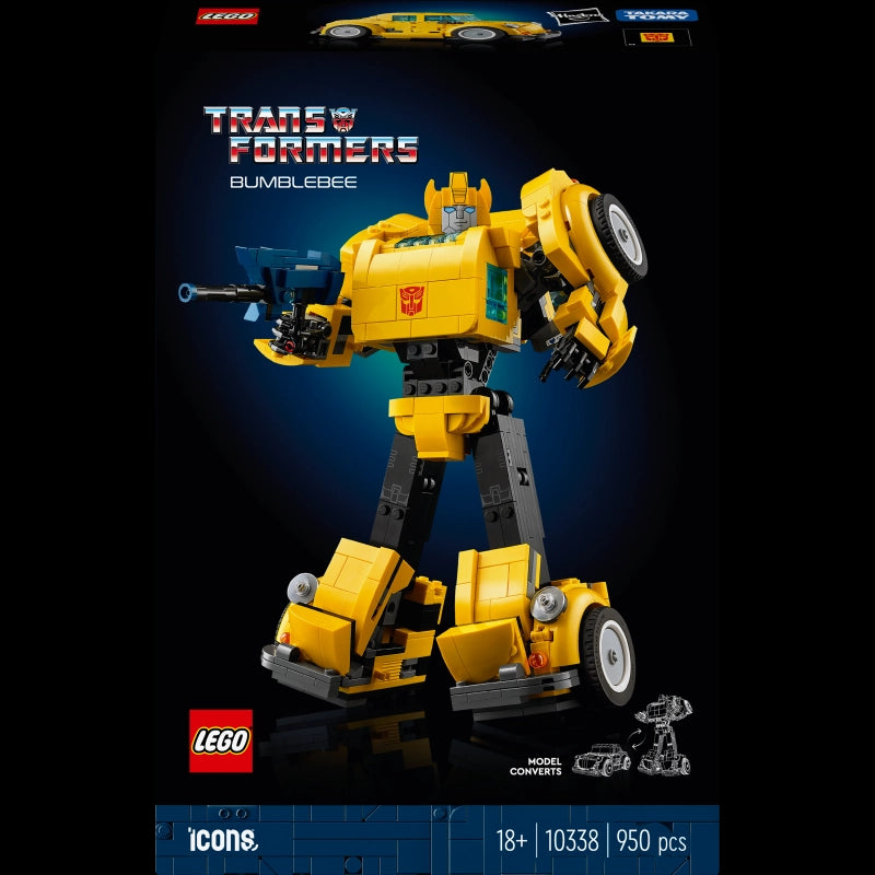 Take on a new building adventure with these inspirational LEGO® sets! Embark on a nostalgic journey with this LEGO® Icons Transformers Bumblebee building project for adults. Designed with sci-fi enthusiasts in mind, this detailed LEGO interpretation of the iconic 1980s Autobot converts from robot to vehicle mode and back again. Enjoy an immersive build, choose your favorite configuration and display your creation for all to admire. Rare building kit.Everything you need to craft a Transformers Bumblebee action figure with articulated joints, an ion blaster and a jetpack, plus a display plaque.This Transformers Bumblebee replica converts from Autobot to vehicle mode.Pose Bumblebee’s articulated joints or catch it mid-conversion for a dynamic display suitable for any living space or workplace.This set is available in the LEGO® Builder app, where builders can zoom in and rotate models in 3D, as well as track and save progress.The Autobot in this set stands over 9.5 inches (25 cm) tall, while in vehicle mode it measures over 3 inches (8 cm) high, 8.5 inches (22 cm) long, and 4 inches (10 cm) wide.Launch date: Nov 01, 2024.-Includes: 950 pieces and building instructions.