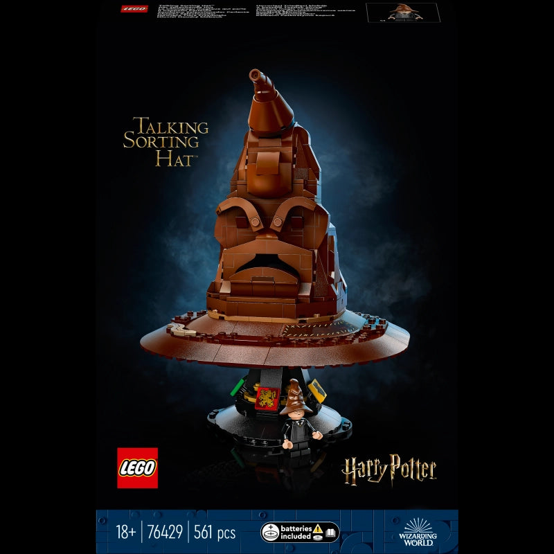 Take on a new building adventure with these inspirational LEGO® sets!Display the magic of the Wizarding World with a brick-built Hogwarts Sorting Hat that’s full of surprises! Tip the top of the hat or place it on your head to make it speak. It has 31 randomized sound combinations! Will it choose Gryffindor, Slytherin, Hufflepuff or Ravenclaw house for you? The hat comes with a stand and a Harry Potter minifigure to complete a playful centerpiece.This set is available in the LEGO® Builder app, where builders can zoom in and rotate models in 3D, as well as track and save progress.The Harry Potter Talking Sorting Hat measures over 9.5 inches (24 cm) high.LEGO® sets are made of high quality materials under the best quality and safety standards.Launch date: Mar 01, 2024.-Includes: 561 pieces including display stand, Harry Potter™ character minifigure, and building instructions.