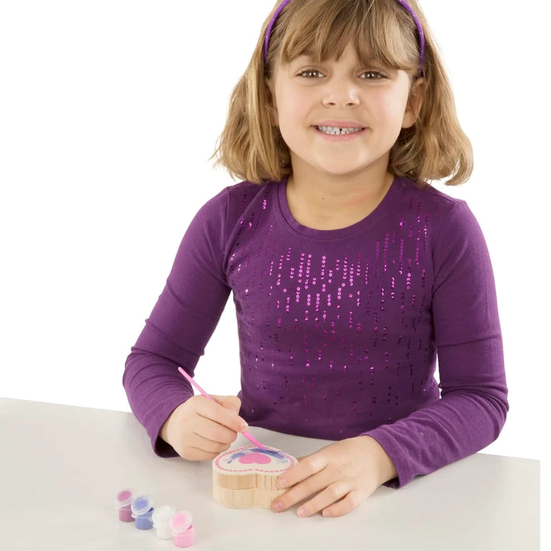 Kids can add their own creative touches to this wooden jewelry box!This kit includes a sturdy wooden heart-shaped box (7.87 x 3.56 x 7.366 cm) and everything you need to add your own unique personal touches to make an original craft inspired by you and your imagination! A perfect activity for parties or rainy days.Features printed details already on box.Engaging arts-and-crafts activity and lasting keepsake in one.Perfect as an individual project or a party activity and favor.Promotes fine motor skills, hand-eye coordination, and creative expression.-Includes: Wooden heart box, 12 gem stickers, 4 pots of paint, paintbrush, glitter glue, and white glue.