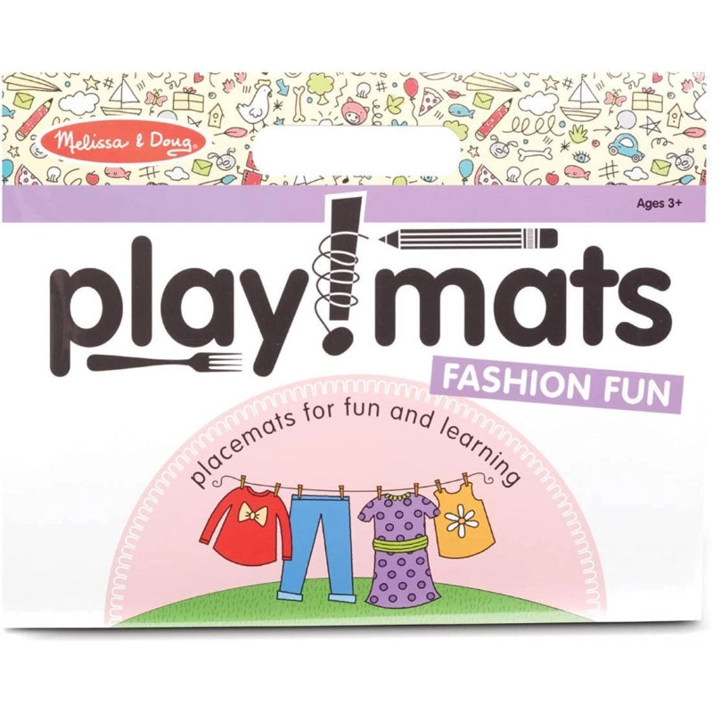 Fashion Fun Playmats coloring and activity pad lets kids bring their creative touch to the table!  More than just paper placemats, the pad includes 24 pages of fashion-themed coloring, cutting, and creative activities that keep kids entertained and learning. Complete partial pictures, learn to draw, practice patterning and counting, find matching pictures, and much more! The pad has a built-in handle, so it's easy to bring to a restaurant, in the car, on the go, to the dinner table, or anywhere kids want. The high quality white bond sheets tear cleanly away from the pad and make perfect recyclable placemats.Helps promote fine motor skills, letter and number skills, color recognition, and creative expression.Makes a great gift for preschoolers.-Includes: 24-page coloring and activity pad.