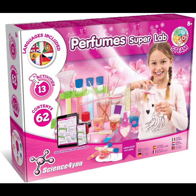 Don't miss the opportunity to make your own  perfumes  with  Science4you  's  perfume factory!Learn how to make scented massage oils and relax with Science4you!  Also make rose tonic, super fun paints and use the tea bags to make your own scents.  It is certainly a toy that smells good!-Includes: Perfume kit with 62 contents for 13 activities, and online educational book.