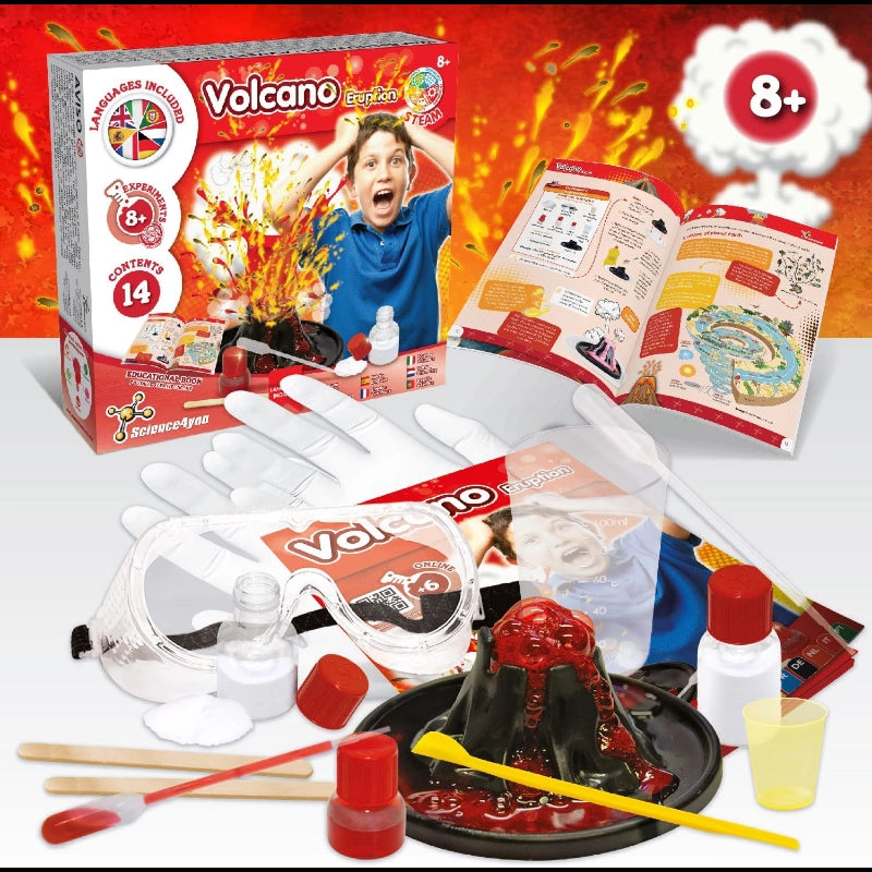 Create your own incredibly realistic and colorful volcanic eruptions!Learn all about volcanic landscapes and volcanic activity and enjoy stimulating volcanic eruptions and creating sticky lava. Discover how science and chemistry can be used to simulate volcanic eruptions and more!-Includes: Science kit with 14 contents for more than 8 experiments, and educational book.