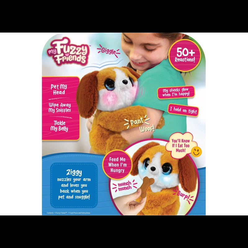 The Snuggling pup is the epitome of a cuddly friend, crafted from the softest plush for the most comforting snuggles!This pup is no ordinary plush Ziggy comes alive with interactive features like purring sounds and delicate movements, offering a sense of wonder with every gentle touch. Perfectly sized for little arms to embrace, Puppy  responds with over 50 sounds and reactions!-Includes: Interactive plush and accessory.