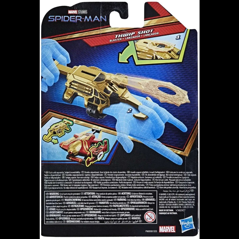 With this Thwip Shot Blaster, kids can imagine they are thwarting villains with powerful new webs!Pull back on the handle of the Spider-Man Web Blaster and activate the webtacular power! Load the webs back in and blast again and again to stretch out the action. Attach to Web Bolt Blaster for an extreme web blasting experience. (Sold separately).-Includes: Blaster and three projectiles.