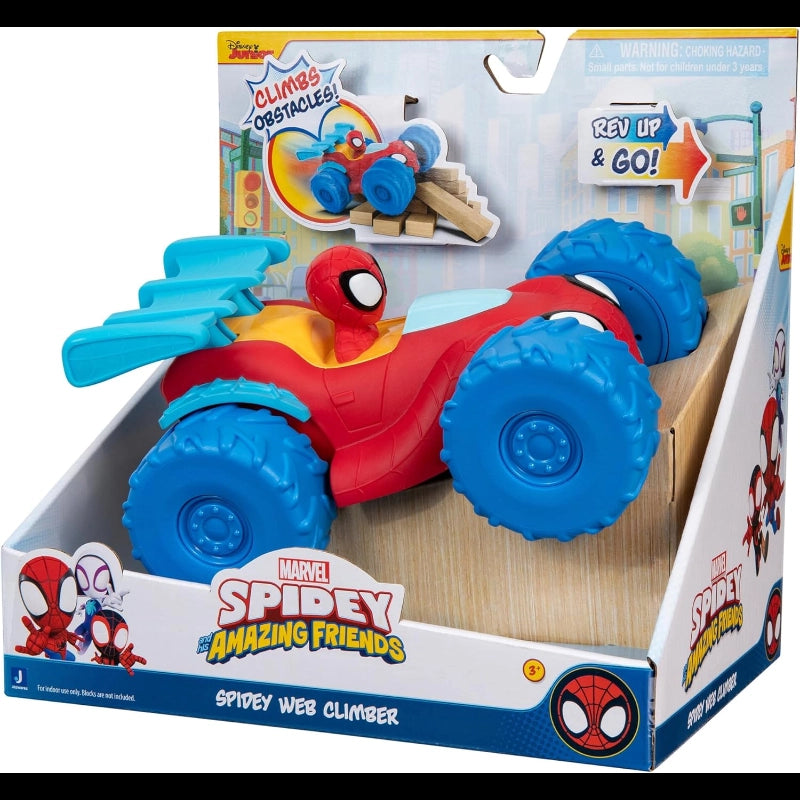 Rise to the challenge with the MARVEL Spidey and His Amazing Friends Spidey Web Climber!This 7-inch (17.78 cm) vehicle features a rev up motor that allows it to climb up and over obstacles. Grab the vehicle and rev it forward to start the internal motor. Then, release the vehicle and let Spidey race into motion. With molded Spidey figure in the driver’s seat, inspired by the hit show Spidey and His Amazing Friends.-Includes: Spidey Web Climber vehicle.