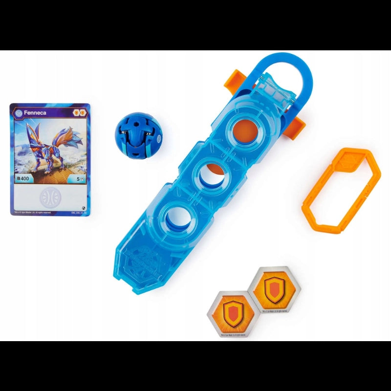 Take your battles on the go with the Bakugan Baku-Clip!  This compact Bakugan accessory is the perfect way to store everything you need to brawl. Every Baku-Clip (each sold separately) comes with a different exclusive Geogan Rising Bakugan and features colors matching its included character. Store three Bakugan and BakuCores inside the case and slide your character and ability cards into the clip on the back. You can even stack two Baku-Clips together! When you’re ready for battle, Bakugan sit in place on top of the Baku-Clip’s lid. Choose your Bakugan and roll it over the metal BakuCore for pop open Baku-Action! Collect all of the Baku-Clips (each sold separately).-Includes: Baku-Clip, exclusive Bakugan, 2 BakuCores, and character card.
