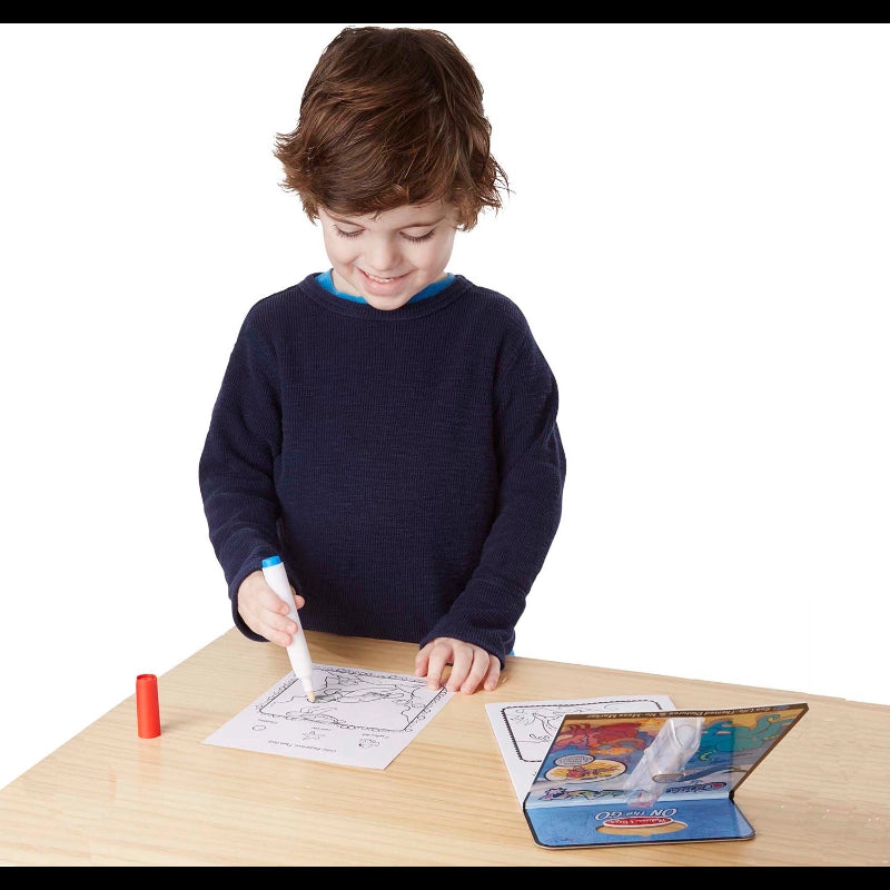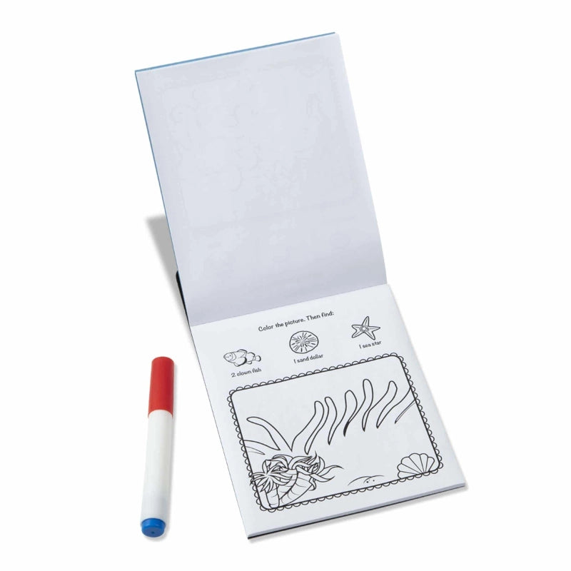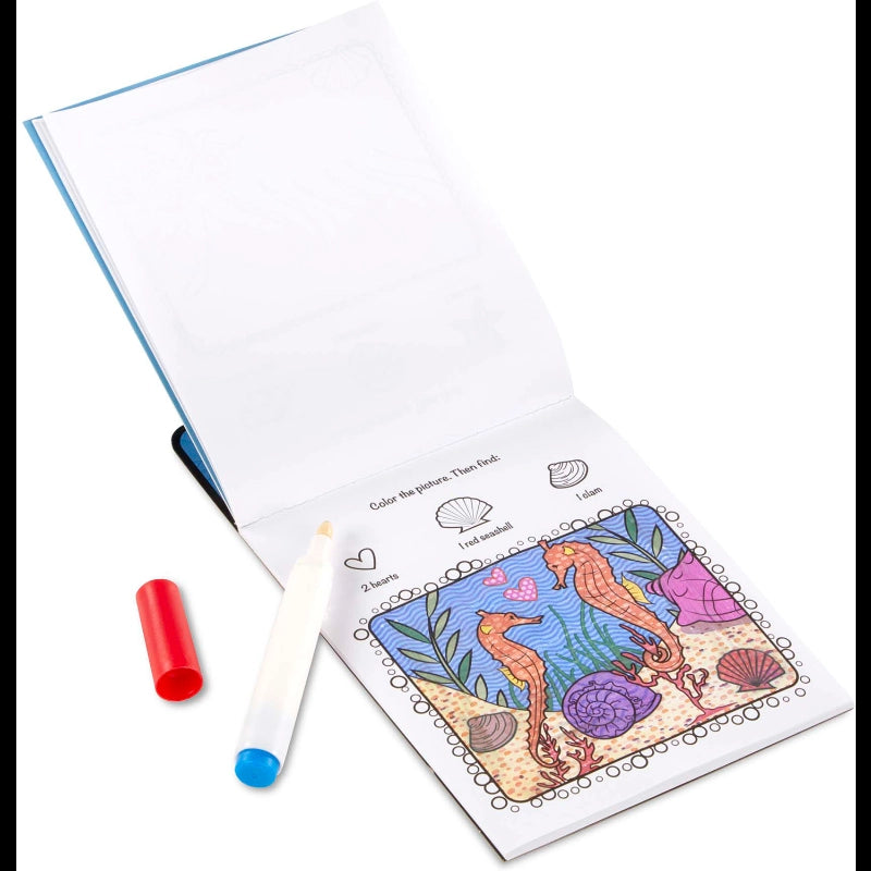 Use the "Magic" pen to color in the picture, and see vibrant colors, details, and patterns appear!Each page of the 24-page activity book for kids three and older features Sea-themed artwork to complete and seek-and-find activities, too! The invisible ink marker only marks on the pages (not clothing or furniture!) and stores in the cover of the spiral-bound pad, so it's a great travel activity.Surprise pictures appear as you color!Promotes fine motor skills, pre-writing skills, and visual discrimination.-Includes: 24 coloring pages, and a marker.
