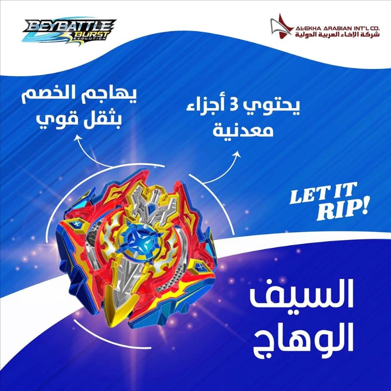 Burst your rival BeyBattle top with this BeyBattle!BeyBattle top is a customizable battling top. Customizing Energy Layer, Forge Disc and Performance Tip enables various performance top battles. Collect, combine and customize to enjoy various battles with your friends!Right spin.Combines with other Beybattle Burst Tops!Three metal parts built in the Evolution layer and Performance tip creates a heavy attack!Tear your opponent down with a tough Sword Impact!-Includes: Energy layer, forge disc, performance tip, launcher, labels, and instruction sheet.