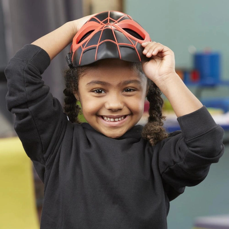 Imagine suiting up as Miles Morales to swing into heart-pounding action in the Spider-Verse! Kids can pretend to gear up and save the world as one of their favorite wall-crawler with this Marvel Spider-Man roleplay mask, inspired by the Spider-Man: Across the Spider-Verse movie. This Miles Morales roleplay toy features a flexible band that fits most aspiring web-slinging heroes. Kids will love re-creating favorite moments from the Marvel entertainment, as well as imagining their own Super Hero adventures!  -Includes: Mask.