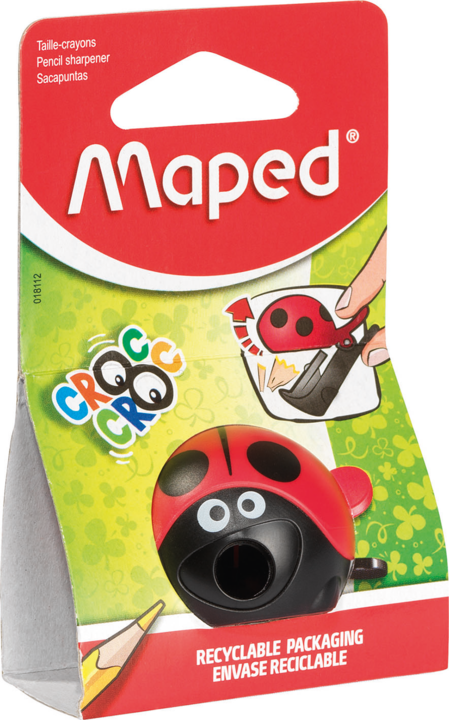 The Croc Croc Easy pencil sharpener hides behind its cute design a system perfectly designed and adapted for children aged 4 and over. The head of the ladybird or shark opens with a clip system, so you can empty the canister. It's so easy, and so much fun! This practical pencil sharpener has an ergonomic shape for an excellent grip, and compact dimensions so it fits easily into your school pencil case. 1-hole sharpener, random colour, ladybird or shark.