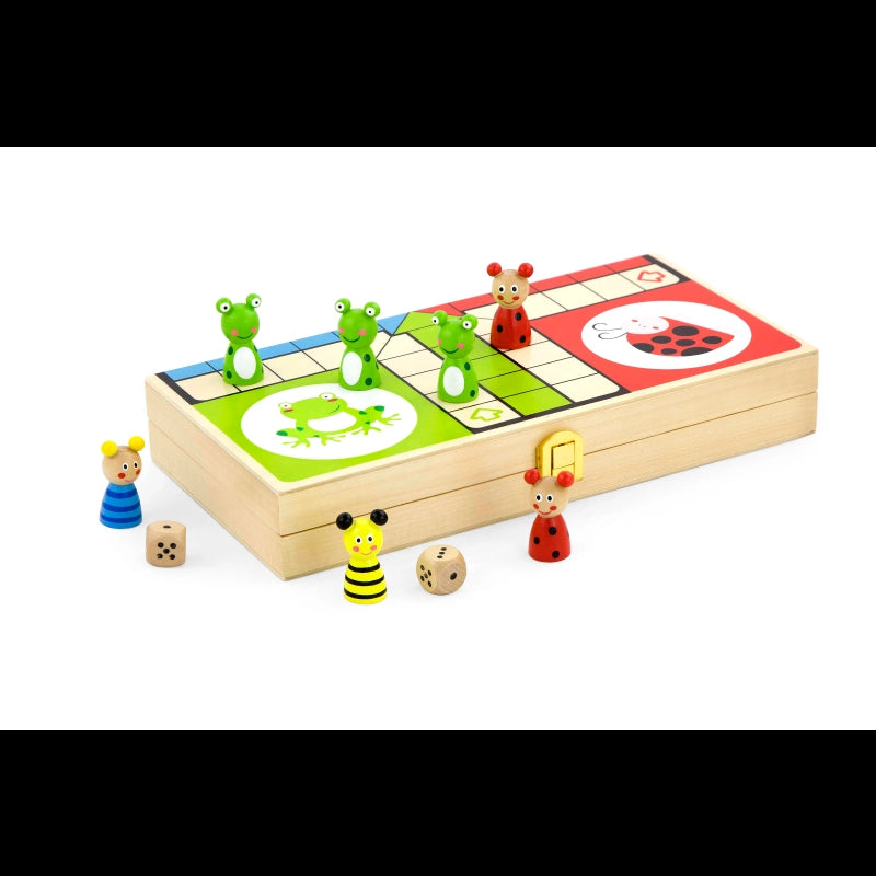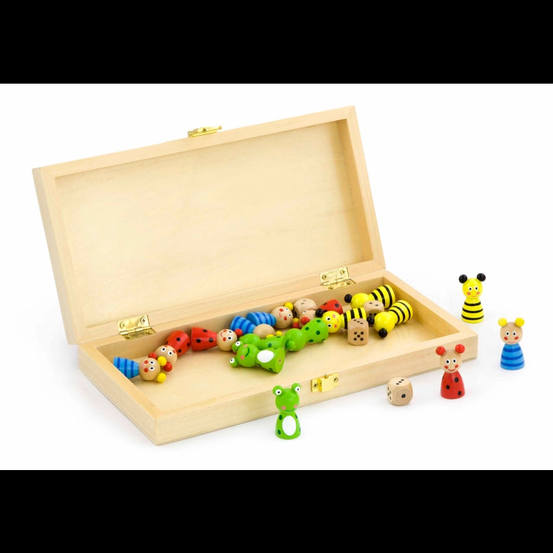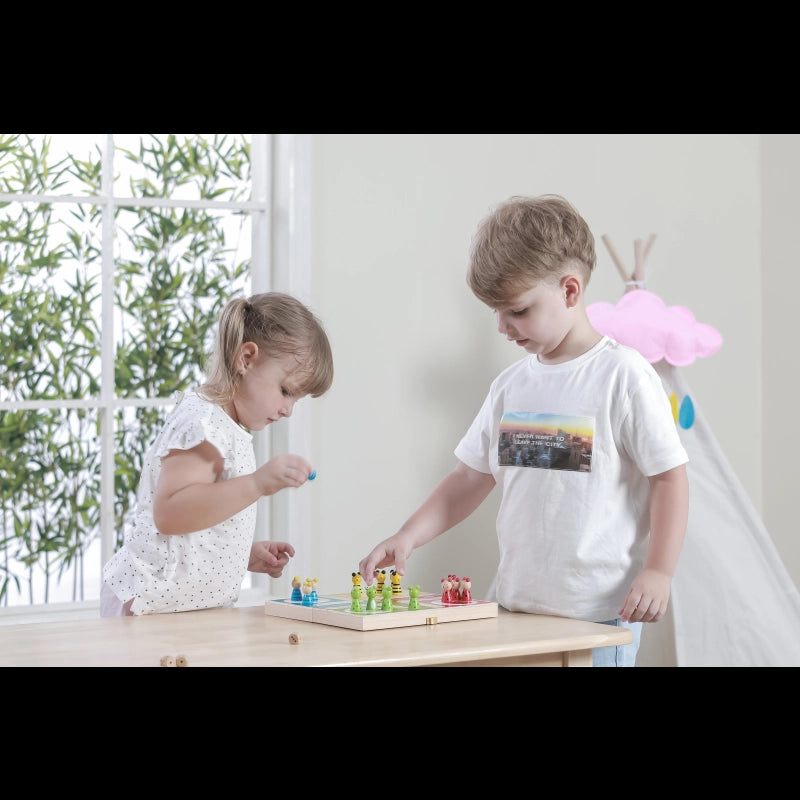 Your kids will have lots of fun with this Ludo game!Open up the storage case and turn it over, colored playing board side up. Enjoy the fun playing with your friends or families. Enhances color discrimination and spatial orientation skills, develops eye-hand coordination and dexterity, and fosters counting, strategic thinking and problem-solving skills.After playing, put the tokens and dices in the case. Good to cultivate good habit of cleaning up.-Includes: Box, 16 wood tokens (4 pcs each of 4 animals), and 4 dices.
