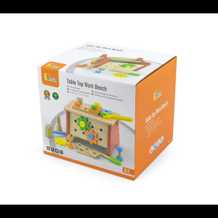 Little builders will love this toy!This cool wooden tool set comes with different basic tools with a workbench, which encourages fine motor skill development.While playing, kids can not only learn and practice daily essential repair ability, but also improve hand-eye coordination.The realistic tools can motivate baby's curiosity to develop their thinking ability, making their ideas come true while inspiring their thinking.Parents can teach small craftsmen how to use these tools like an adult, and the function of different tools. While enjoying your happy family time, kids' logical thinking ability will have a big improvement.-Includes: Working table with tools.