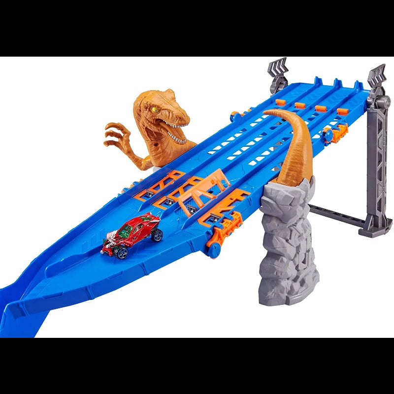 Metal Machines brings speed, challenges and action right to you!Unleash the Raider & your other Metal Machines into this action packed track set. This pack is absolute 4-lane madness. Beware of the attacking Raptor. If your Metal Machine is fast enough to escape the Raptor attack more obstacles are awaiting. Two hidden ejector traps along the track are the ext threat your Metal Machine has to overcome. Only one Metal Machine will survive!-Includes: Metal Machines 4-lane racing track, 2 elimination traps, attacking raptor track addition, exclusive die cast car and instruction manual.