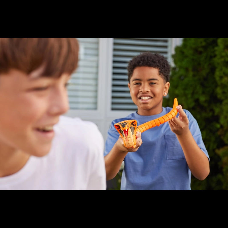 Terrifying from tongue to tail, unleash the thrill with the Robo Alive King Cobra!Measuring a terrifying 17.52-inches (44.5 cm) and featuring smart movement technology, it flicks its tongue and slithers realistically. With ultra-realistic snake skin, it's perfect for epic pranks. Hide it for blood-curdling screams!-Includes: Cobra and instruction booklet.