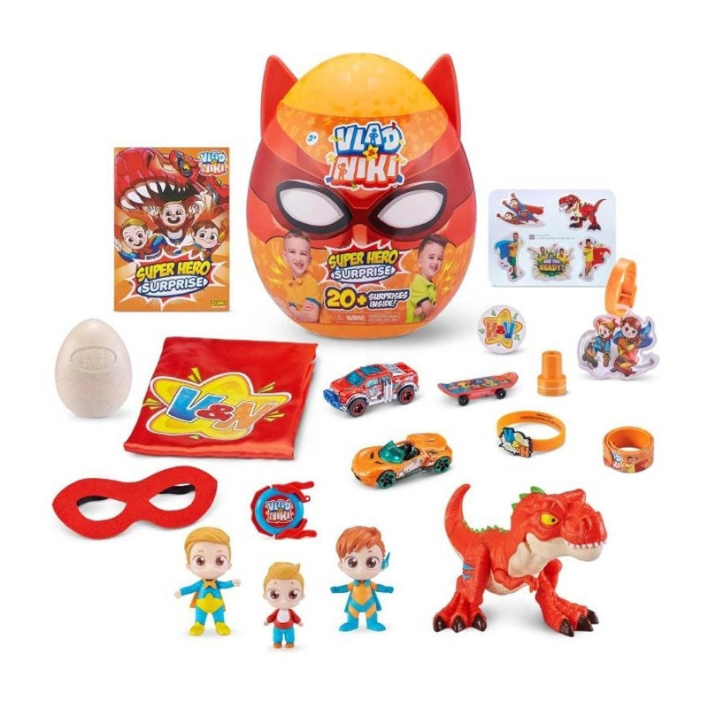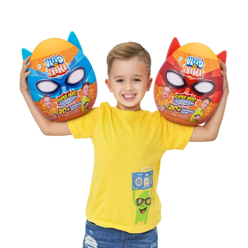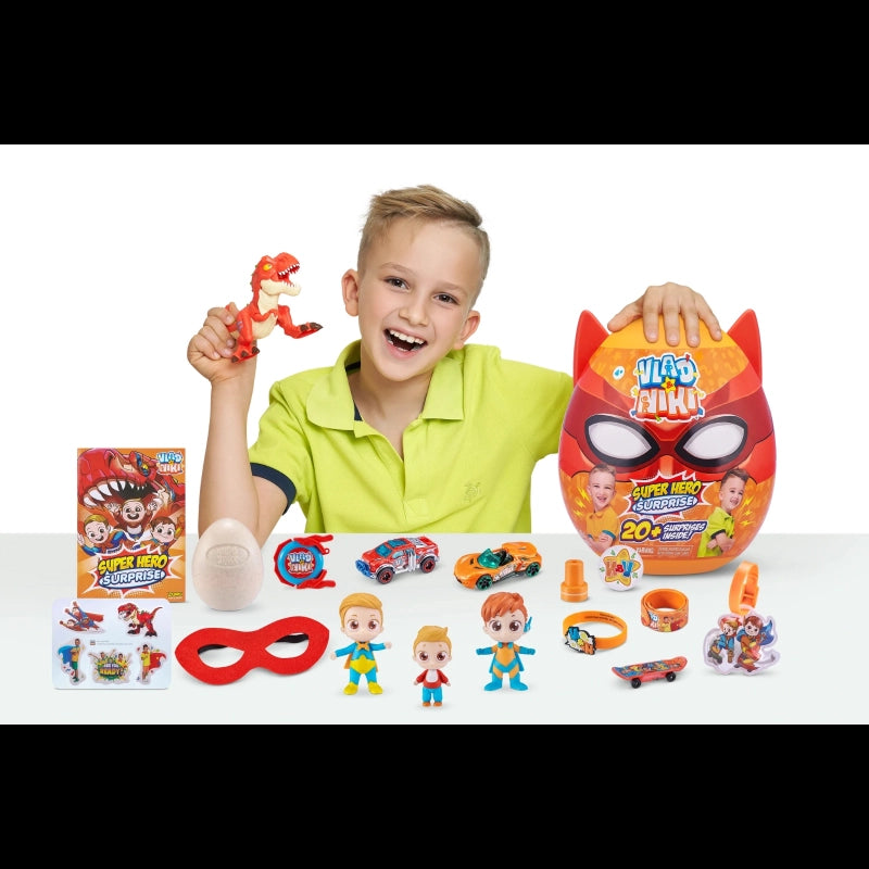 Recreate the superhero adventures from Vlad & Niki's YouTube videos in your own home!Discover more than 20 epic superhero themed surprises inside each egg that includes everything you need to look and feel ready to save the world!  Use your imagination and the accessories included to fight crime for hours! You can set off on solo adventures or team up with others to defeat evil alongside Vlad & Niki. This egg has two unique assortments to collect (each sold separately).-Includes: Egg and more than 20 surprises.