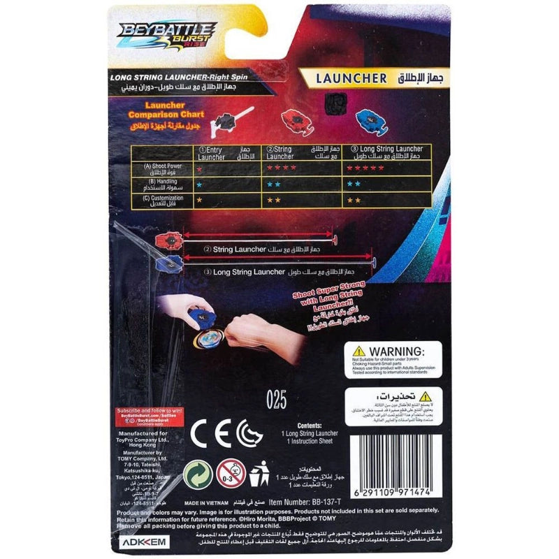 Burst your rival Beybattle top with this Beybattle!Shoot super strong with this long string launcher!Long string launcher- Right spin.Shoot power.Easy to use.Cuztomizble.This launcher only supports right spin BeyBattle tops and is only compatible with BeyBattle products.-Includes: Long string launcher and instruction sheet.
