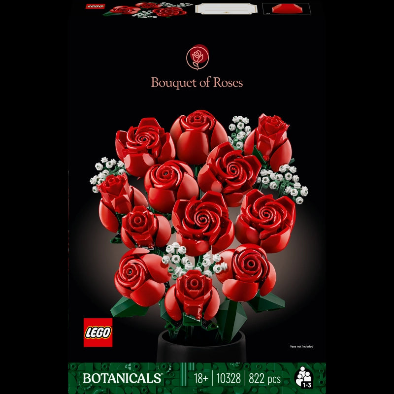 Take on a new building adventure with these inspirational LEGO® sets!Indulge yourself or gift a loved one with the LEGO® Botanicals Bouquet of Roses. Perfect for Valentine's Day or any special occasion, this radiant buildable bouquet includes a dozen red roses and 4 sprigs of baby’s breath. Enjoy a mindful building experience as you craft each bloom before placing them in your favorite vase to create a timeless display for the home or office.Features roses at various stages of flowering, including 4 roses in full bloom, 4 blossoming and 4 in bud.Maintenance-free home decor.Vase not included.The tallest rose in this building set measures over 12 inches (30 cm) long.LEGO® sets are made of high quality materials under the best quality and safety standards.Launch date: Jan 01, 2024.-Includes: 822 pieces in 6 brick bags and 3 sets of instructions.