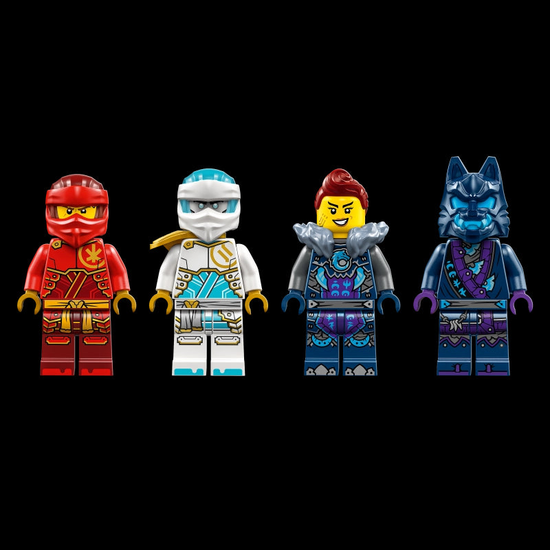 Take on a new building adventure with these inspirational LEGO® sets! Kai’s Elemental Fire Mech wields a golden sword so he and Zane can take on the evil Jordana and Wolf Mask Warrior in front of the shadow dojo. Now, for the first time, you can combine the parts of 3 awesome ninja mechs piloted by Sora, Cole and Kai to create your own unique mech. Each customizable figure is sold separately and has detachable legs, arms, weapons and torso so you can mix and match. Set comes with Kai, Zane and Jordana, each with a sword element, and a Wolf Mask Warrior so kids can re-enact battles from season 2 of the NINJAGO Dragons Rising TV show.Kai’s mech has posable arms and legs that can be tilted and twisted into battle stances, and a big golden sword for role-play battles against a Wolf figure.Look out for more NINJAGO® toys (each set sold separately) featuring dragons, mechs and vehicles.This LEGO® set includes a NINJAGO® mech standing over 6 inches (16 cm) tall.Launch date: Jan 01, 2024.-Includes: 322 pieces and building instructions.