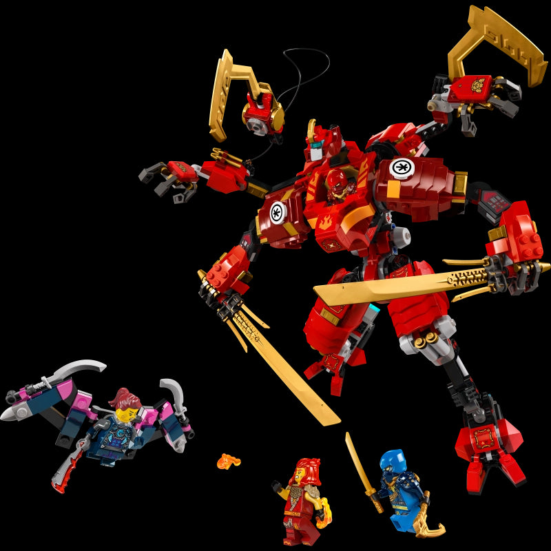 Take on a new building adventure with these inspirational LEGO® sets!Jump into the action with Kai’s Ninja Climber Mech as you swing between the trees high up in the Shadow Forest. Climber Kai is in the mech’s cockpit operating its hooks and 2 large katanas as he battles with the evil Jordana, who is flying in her powerful glider. Both Climber Jay and Wyldfyre lend support but need to watch out for her katana! Can you help them triumph? The ninja mech toy’s arms, legs, torso, head and feet are posable, and it comes with 2 big katana sword accessories and an opening cockpit with space for a minifigure.On the back of the mech are 2 large ninja hooks that kids can use to stage exciting climbing stories and then display it after playtime.This ninja toy includes Climber Kai and Climber Jay, each with a katana sword accessory, Wyldfyre with 2 flammable fists, and Jordana with a glider vehicle.This set is available in the LEGO® Builder app, where builders can zoom in and rotate models in 3D, as well as track and save progress.Look out for more NINJAGO® toys (each set sold separately) featuring dragons, mechs and vehicles.This mech stands over 9 inches (23 cm) tall.Launch date: Mar 01, 2024.-Includes: 623 pieces and building instructions.