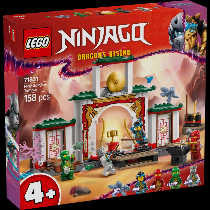 Take on a new building adventure with these inspirational LEGO® sets!Train your favorite ninja heroes at their supercool Ninja Spinjitzu Temple! Nya, Kai, Lloyd and Zane are all ready to jump onto moving battle plates on a special tournament stage to develop their fighting skills. In between practice sessions, they can hang out at a teahouse, relax in a small garden, play with Baby Riyu or even search for a hidden letter. Get ready to be a ninja! The detailed ninja temple consists of a teahouse, a weapons training area, a small garden and a tournament stage with 2 turning battle plates.Ninja warriors Zane, Nya, Kai and Lloyd, plus a Baby Riyu dragon toy so kids can play out action.Role-play toy set includes ninja weapons including 2 swords and 3 staffs, as well as a hammer, a bird, a frog, a teapot, a cookie, a cup, a trophy and a letter.This LEGO® set provides a fun build-and-play experience and is a birthday gift idea for kids aged 4 and up to fuel their imagination and develop their storytelling skills.Look out for more NINJAGO® toys (each set sold separately) featuring dragons, mechs and vehicles.This LEGO® building set with a ninja temple measuring over 6.5 inches (17 cm) high, 12.5 inches (32 cm) wide, and 5 inches (12 cm) deep.Launch date: Jan 01, 2025.-Includes: 158 pieces  including a LEGO® starter brick element and building instructions.