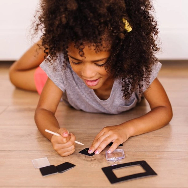 Get the party started with 48 awesome Scratch Art® projects to do with friends or give as gifts!Simple to use, amazing results, and surprises revealed with every scratch!  The Deluxe Party Pack includes jumbo stickers, key chains, bookmarks with ribbons, and magnetic frames with bonus pop-out rectangular magnets. Scratch away at the black coating to reveal a rainbow of colorful patterns. Kids can use the included wooden stylus tools to add designs, doodles, patterns, words, pictures and more!-Includes: 12 jumbo stickers (stars, hearts, and flowers), 12 key chains, 12 bookmarks with ribbons, 12 magnetic frames with bonus pop-out rectangular magnets, 12 wooden stylus tools.