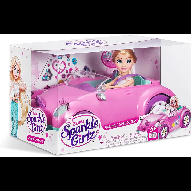 ZURU Sparkle Girlz Convertible is a must have for any doll collection! Your Sparkle Girl doll will be racing away in her sporty coupe in style! This car has turning wheels, boasts stylish tires and an interior so your dolls can always ride looking the best. With 2 seats there is room for a friend and don't forget your safety belt too! Think of all the places to drive and see. -Includes: Doll, car, and sticker sheet.