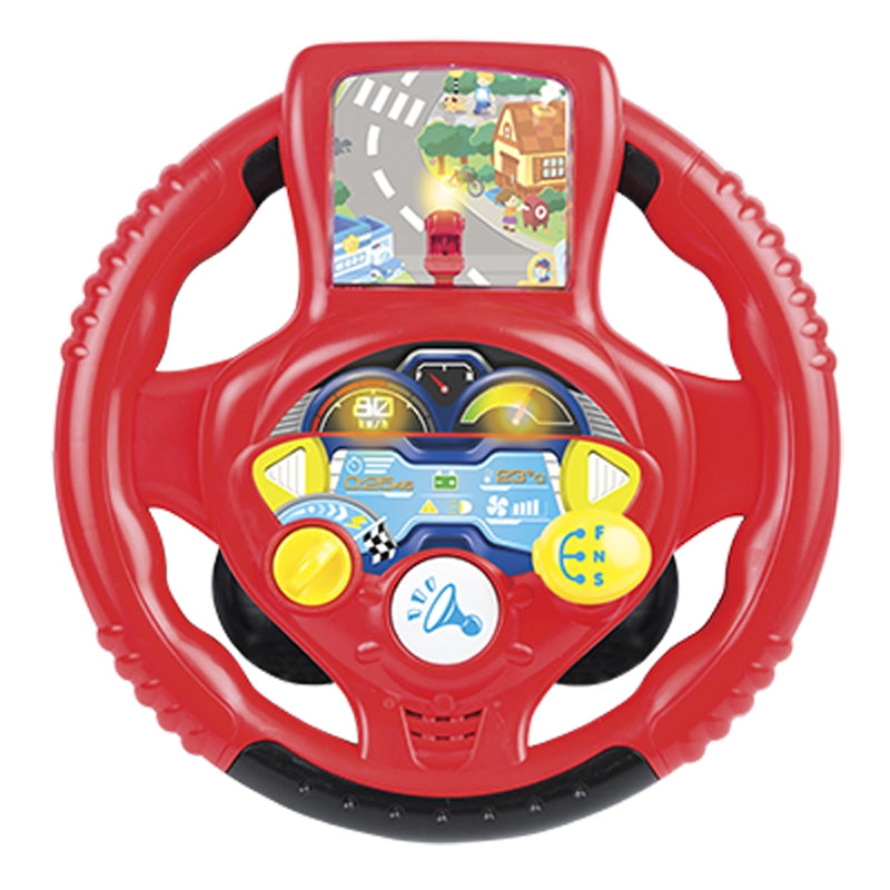 Enjoy interactive driving with this Speedster Driver Steering Wheel!Steering wheel with 2 speed gearshift and light-up dashboard.Screen features driving car with headlight.Turn the steering wheel to control the car.Realistic car sounds include ignition key, horn and gear change.Designed to improve child's gross motor skills.Batteries included.Designed based on Winfun CPS parenting system for developing the baby's cognitive, physical and social skills.