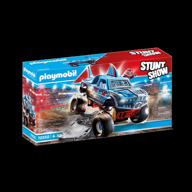 Children can play with this set on its own, or combine with other Playmobil sets for hours of fun!This truck with shark fin on the roof and four spring-mounted tires for optimal adaptation to the ground. The rear flap of the truck can be folded down. With removable roof and room inside for up to four figures, drivable scrap car and cool stunt show driver.-Includes: Figures: Monster truck driver (figures can bend, sit, stand, and turn their heads). Accessories: Monster truck, junk car, and megaphone.Building instructions