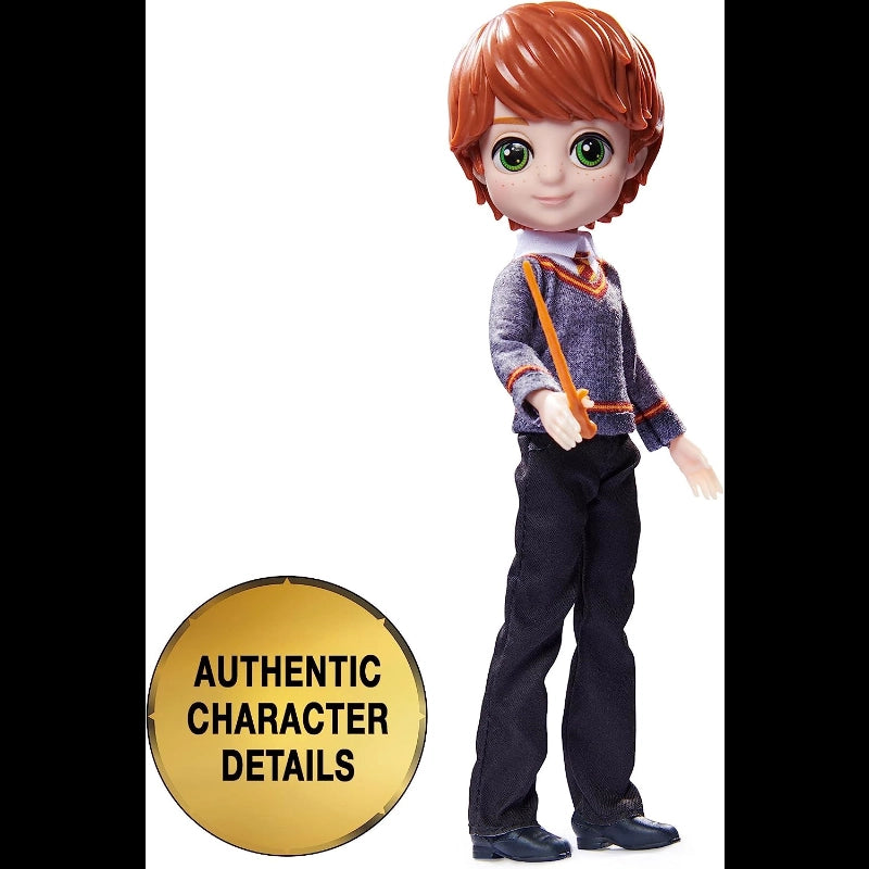 Imagine joining your favorite Harry Potter characters on spellbinding adventures with the Wizarding World Magical Minis small dolls!Young witches, wizards, and Muggles can recreate scenes with these must-have collectible Harry Potter toys. From Harry’s Hogwarts uniform and Gryffindor scarf to Dumbledore’s beard and robe, each Magical Minis 8-inch doll is highly detailed, bringing the beloved Harry Potter characters to life.Each Wizarding World Magical Minis doll has an articulated head, arms, and waist.Figure can activate magical features in the playsets (sold separately)!-Includes: Ron Weasley figure.