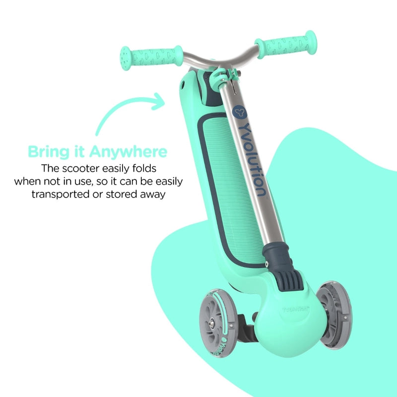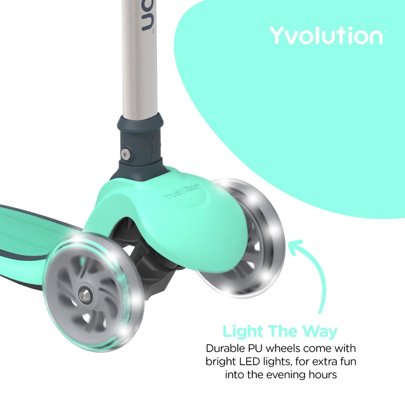 Yvolution scooters guarantee a ride full of ultimate happiness and hours of fun for your little ones!Kids will definitely enjoy riding the 3-wheel scooters designed by Yvolution. Comes in bright colors that will amuse your child and is designed to provide them with a fun, smooth, stylish, and safe ride. Folding three-wheel scooter.Made with lightweight materials that make it easier for a child to carry around.Battery-free LED wheels.Adjustable T-bar (63-80 cm).-Includes: Scooter.